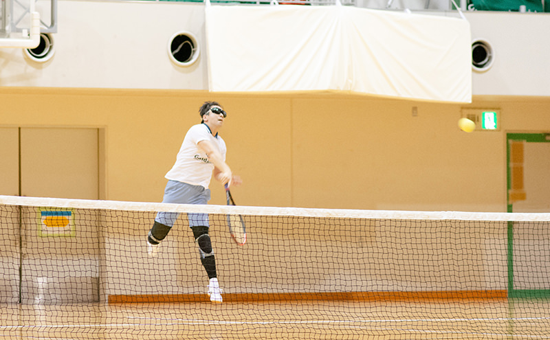 ブラインドテニスの最大の特徴は、視覚に頼らず「音」と「感覚」でプレーする点にあります。使用されるボール(スポンジボール)は動くと音が鳴り、選手はボールの音と、自分の感覚を手がかりに、ボールの位置や速さを予測します。 とくに高さのある動きへの対応は、他の視覚障害者向け競技には見られない難しさがあり、積み重ねた経験と集中力、空間認識力、そしてわずかな音の違いを聞き取る繊細な聴覚が求められます。